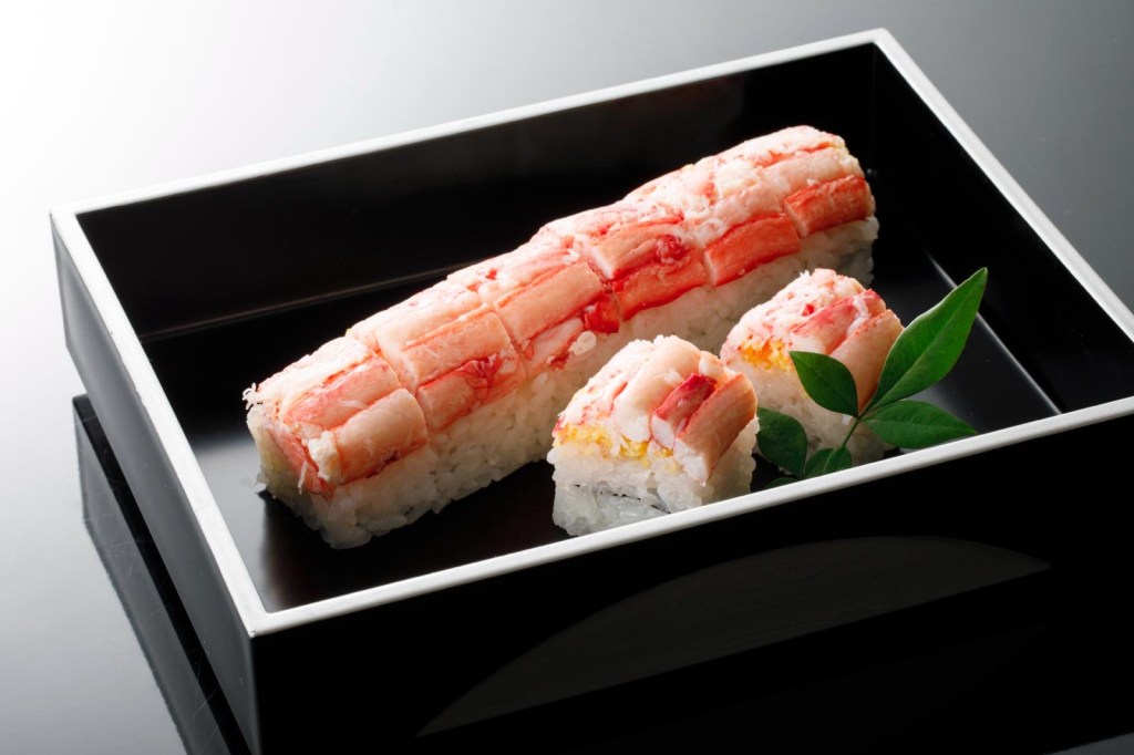 (From Top to Bottom) Red Snow Crab Sushi 200g (Shibazushi), Tako Senbei (Meijuya)