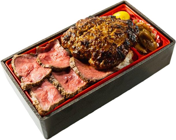 (From Top to Bottom) Wagyu Hamburg & Steak Bento (Hakusuino Kura), Hiroshima Okonomiyaki (Compton)