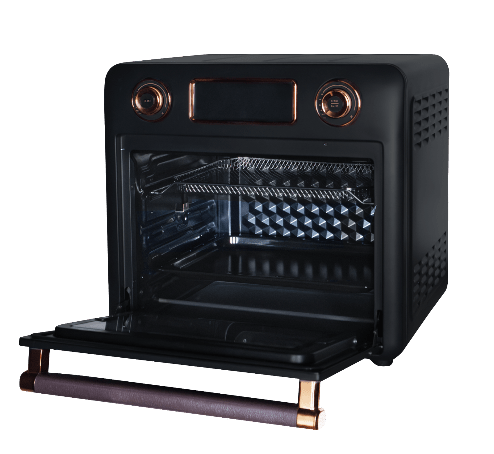 | This all-in-one countertop convection oven and air fryer blend two must-have cooking techniques into a sleek, space-saving package, ideal for the holiday season. Equipped with convenient features like a 120-minute timer, independent top and bottom temperature control, each spanning from 60°C – 230°C, an LED screen display, and a digital control panel, achieving precision cooking results for your Hari Raya feasts is effortless. Moreover, the oven’s double glass door enhances heat retention, while the 3D diamond surface at the back of the oven cavity ensures even cooking, guaranteeing dishes that are sure to impress your guests. Complemented by a variety of accessories, including a mesh basket tray and rotisserie, this versatile essential is the ultimate partner for crafting festive culinary delights. | |