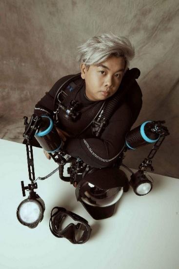 Top to Bottom: A nudibranch, doto greenamyeri, captured on camera by internationally recognised photographer Toh Xing Jie, and a behind-the-scenes shot of him ready to scout waters to snap pictures of local marine life that often go unnoticed.