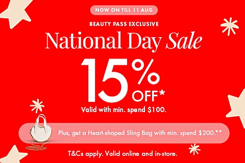 Start shopping on the Sephora app and Sephora.sg from 7 August (10pm) and in stores from 8 August onwards to 11 August and enjoy an exclusive 15% discount on your cult favourite items with a minimum spend of $100!