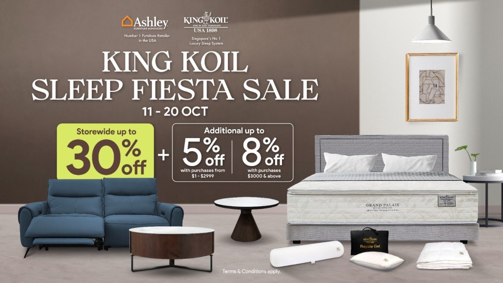 The King in Sleep Technology, King Koil, will be holding the Sleep Fiesta Sale happening from 11 to 20 October 2024. Shoppers can enjoy up to 30% off, plus an additional up to 8% off on a wide selection of premium mattresses, bed frames, furnitures and bedding essentials.