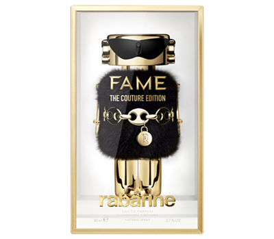 In an ode to Rabanne’s unique legacy, the bottle of FAME The Couture Edition is a masterpiece in effortless chic. The iconic chainmail dress from the existing FAME fragrance family transforms into a black furry outfit, perfect for the Parisian It-girl as she parties through the night.