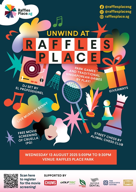 Come and join in the fun on 13 August 2025 for UNWIND @ Raffles Place at Raffles Place Park, right above Raffles Place MRT station!