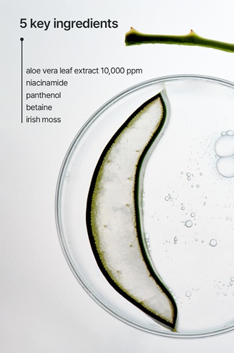 Experience gentle barrier care that calms and hydrates sensitive skin with soothing aloe vera leaf water.